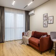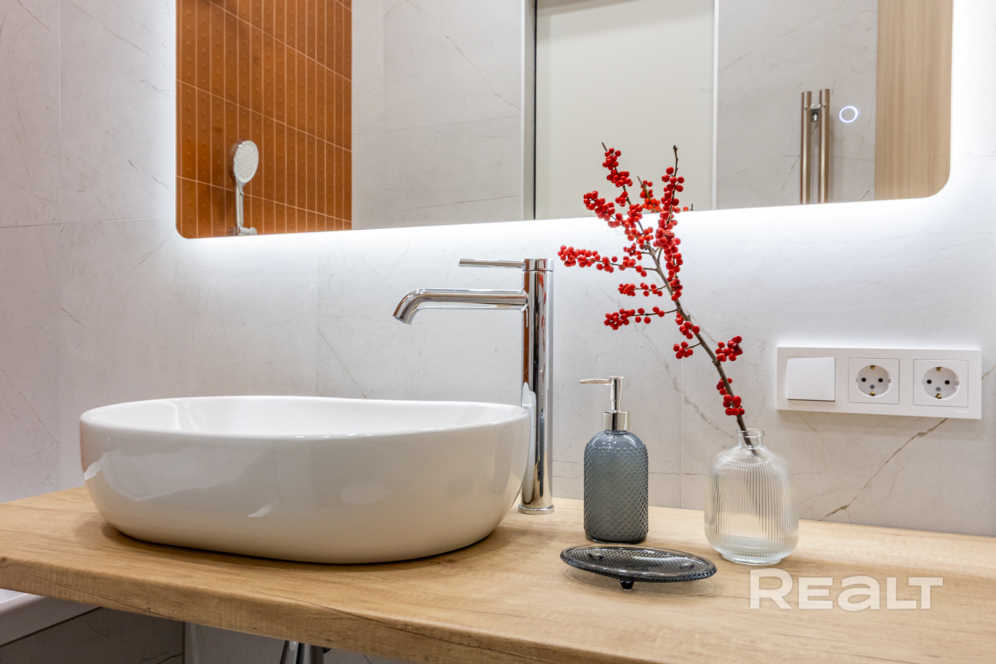 Пространство, свет и воздух — именно так ощущается эта квартира. Большие окна открывают захватывающий вид на город и зелёный массив, усиливая эффект простора и уюта.