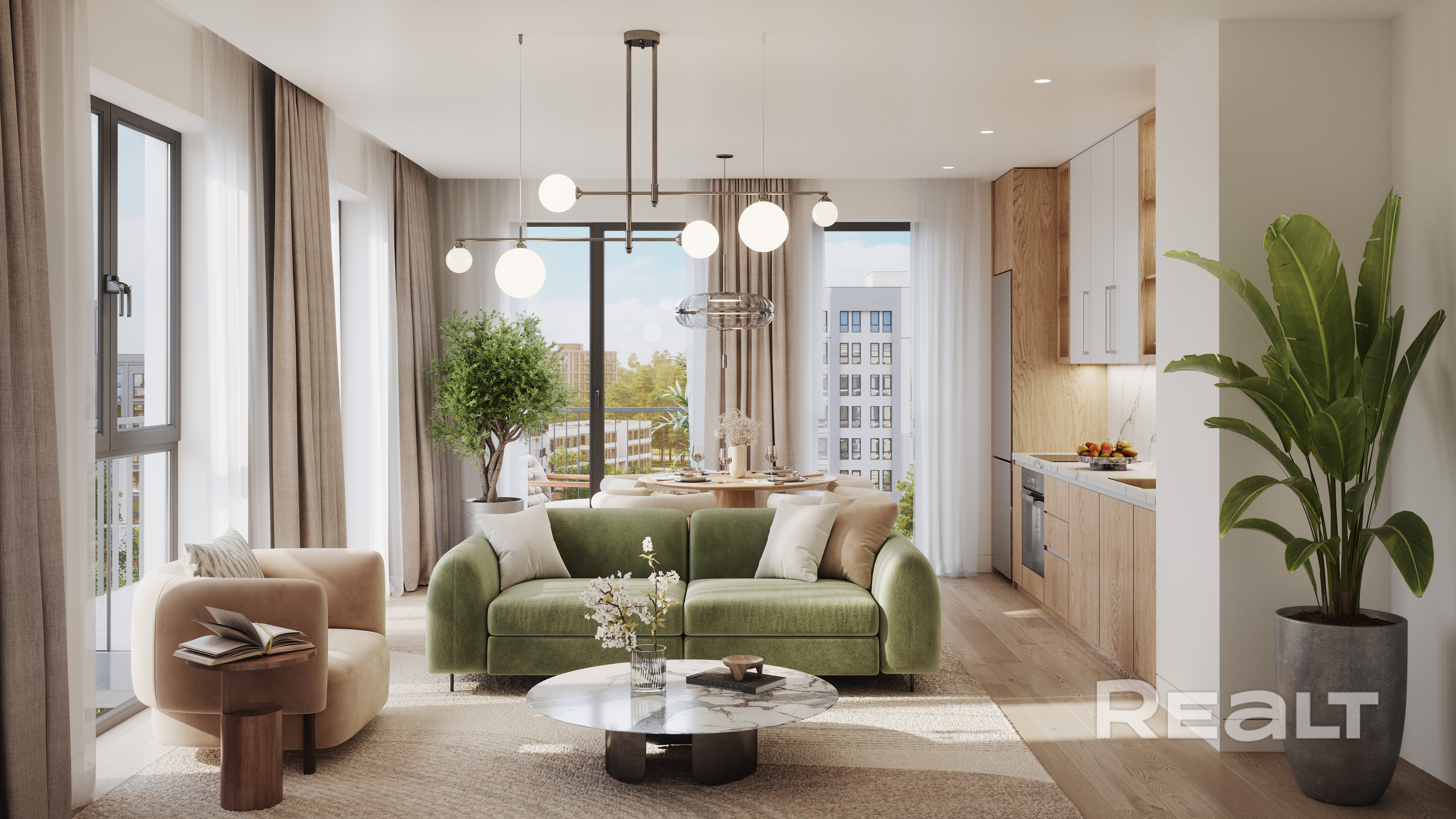 Квартира с дизайнерской отделкой в строящемся доме "Северного Берега" в Минске (продажа от ЗАСТРОЙЩИКА). Для будущих жильцов мы уже предусмотрели: кухня с фартуком из широкоформатного керамогранита и смарт-подсветкой, встроенные шкафы с подсветкой и доводчиками, кондиционеры в каждой комнате, полностью оборудованные ванные комнаты. На первом этаже - Клуб Жильцов с кинотеатром, тренажерным залом, коворкингами, комнатой для мероприятий, игровой и др. пространствами. Рядом детский сад и паркинг.