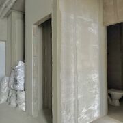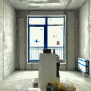 - Установлены оштукатуренные перегородки отделяющие спальню от кухни-гостиной