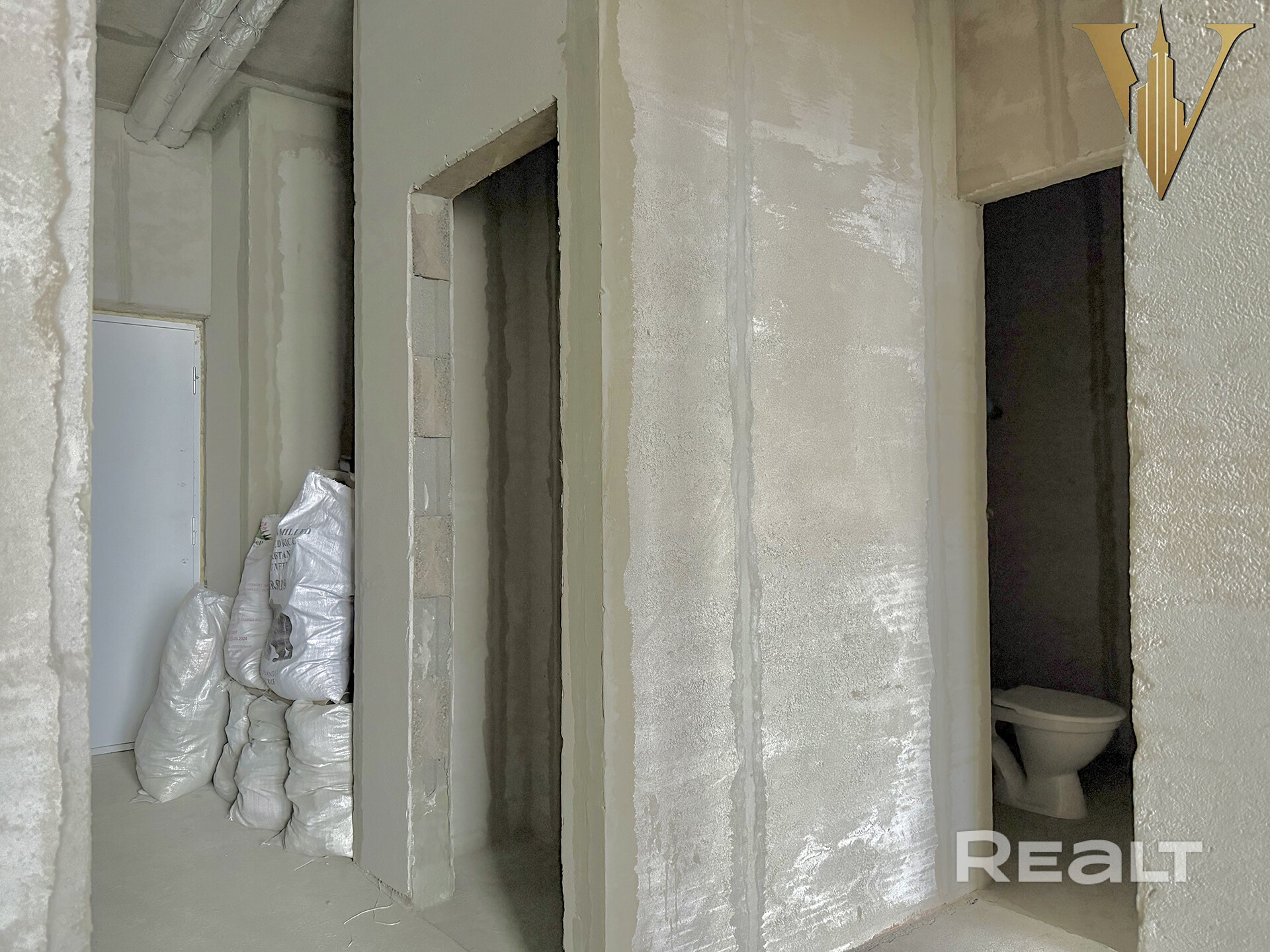 Продается евродвушка на 25этаже. Новостройка. Минск Мир. Без отделки. Площадь по СНБ-38,3м2. Дом Сан-Паулу 2024 года постройки Видовой последний 25 этаж. Потолки 3,2м. Установлены оштукатуренные перегородки отделяющие спальню от кухни-гостиной. Современный подъезд со сквозным проходом. Благоустроенная придомовая территория с парковками, спортивными и детскими площадками. Удобный выезд в центр города и на МКАД. До станции метро Аэродромная 10минут пешком.