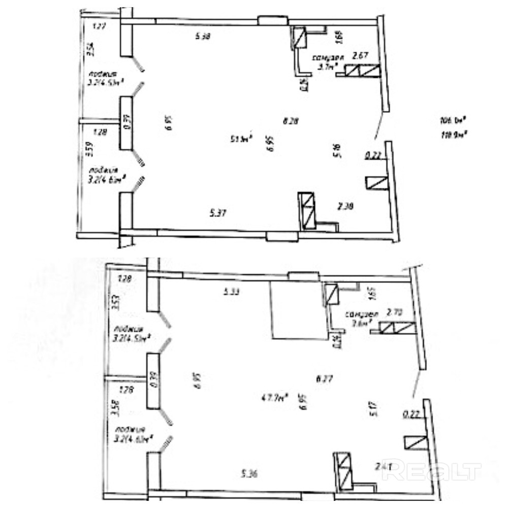 Общая площадь квартиры : 106.1 м2 (по СНБ — 118.9 м2)