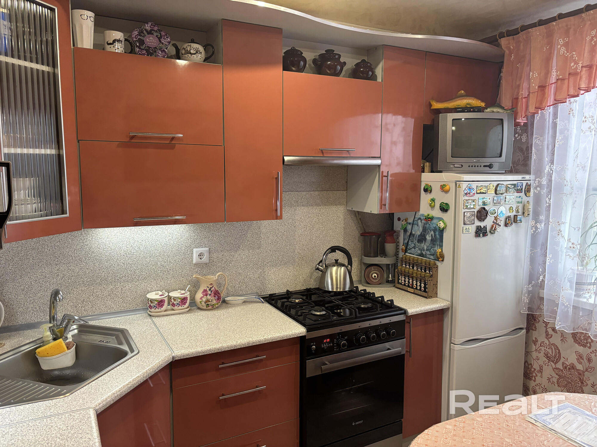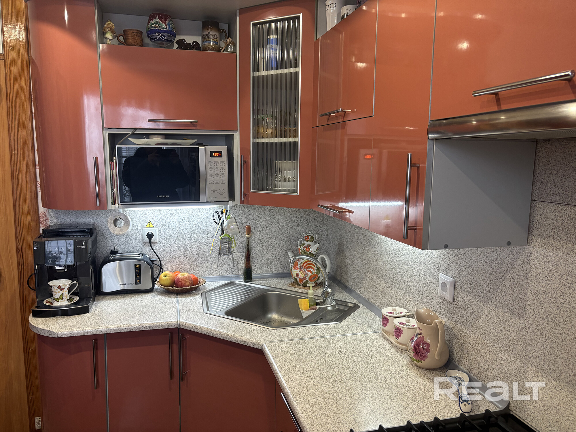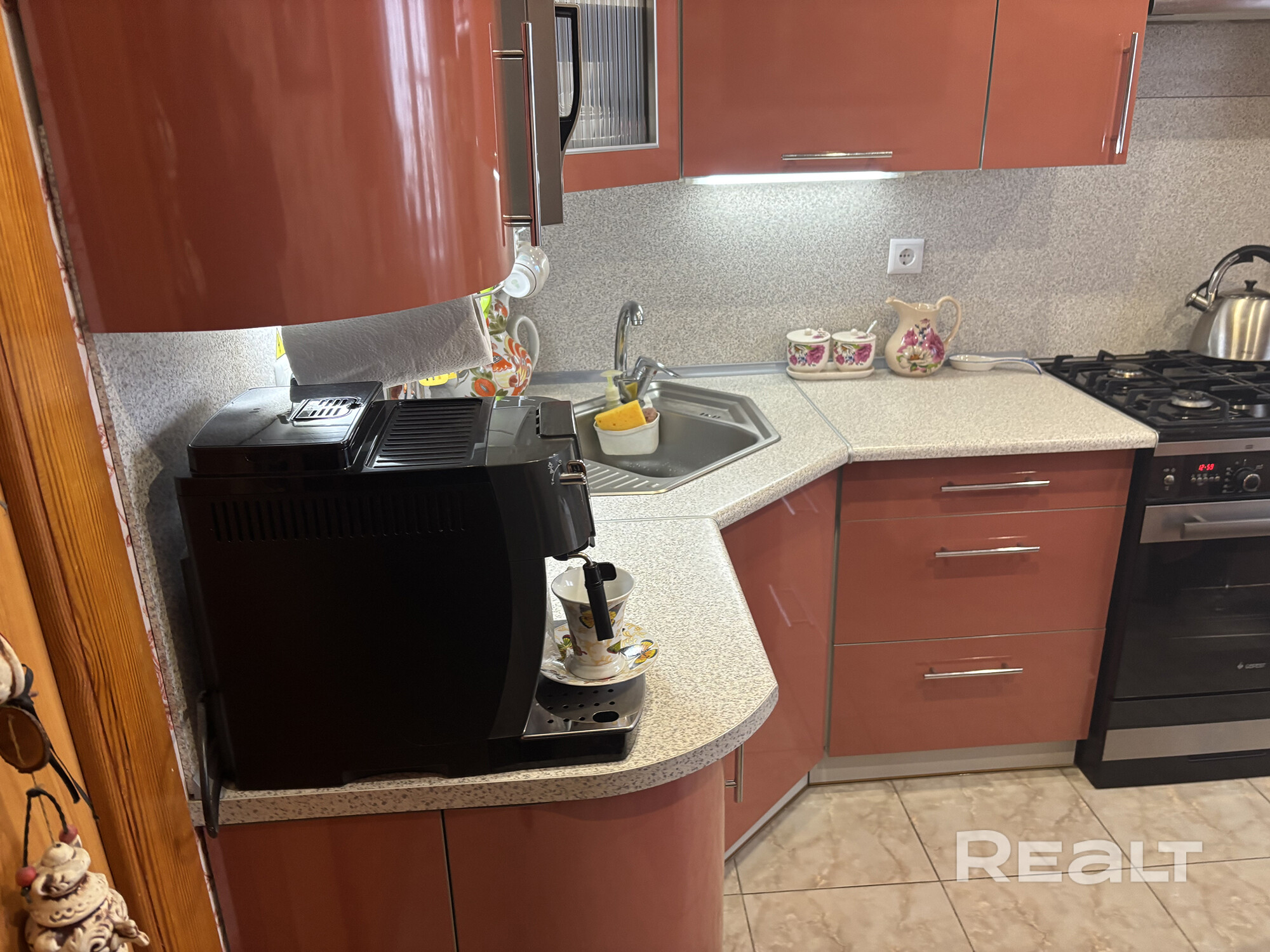 Продается с мебелью и бытовой техникой: встроенная кухня, шкафы-купе.
