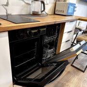 Кухня оборудована встроенной мебелью и  укомплектована бытовой техникой, обустроена спальная зона и зона отдыха, а так же места для хранения с продуманной организацией внутреннего пространства.