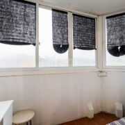 ПВХ-окна, ровные стены, импортные обои, потолки окрашены.