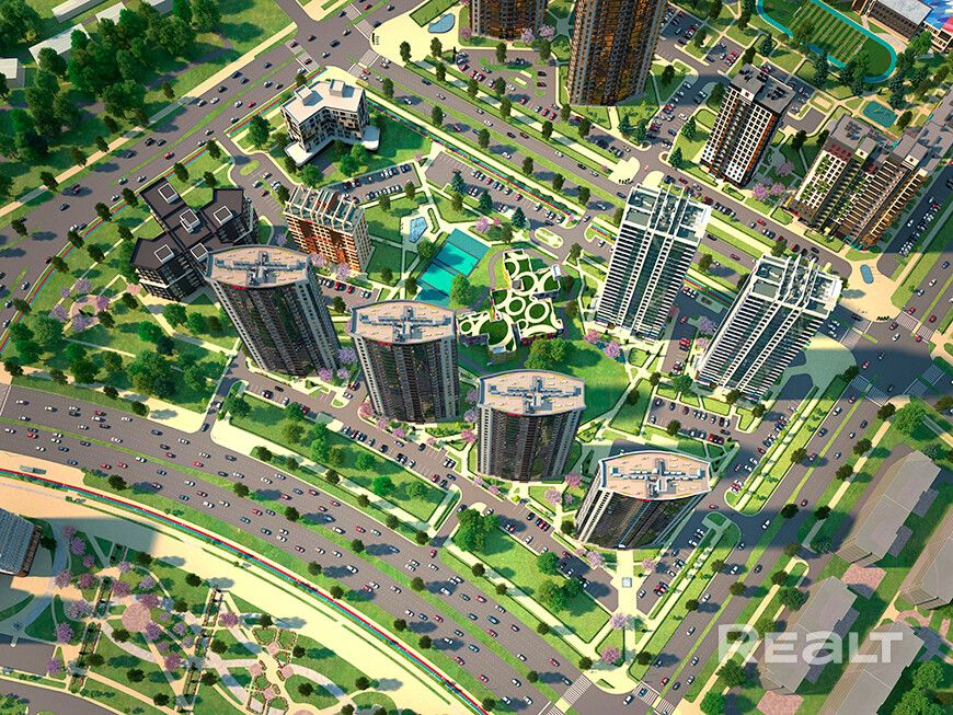 Зеленая парковая зона, международный финансовый центр и крупнейший торговый центр Авиа Молл в центре комплекса в пешей доступности будет вся инфраструктура Minsk World – взрослая и детская поликлиника, медицинский центр, кафе и магазины, парковки, спортивные залы и фитнес-центры.