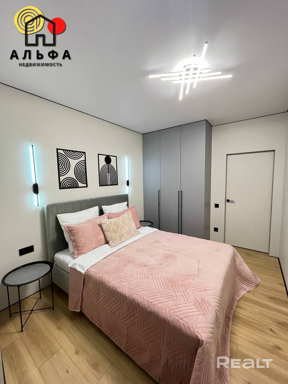 - Уютная спальня: выполнена в спокойных тонах, способствующих полноценному отдыху и крепкому сну.