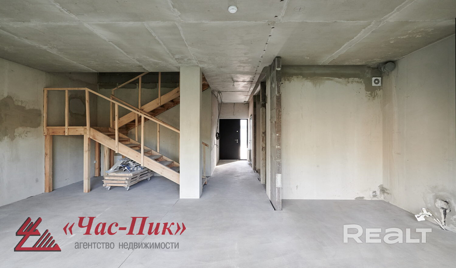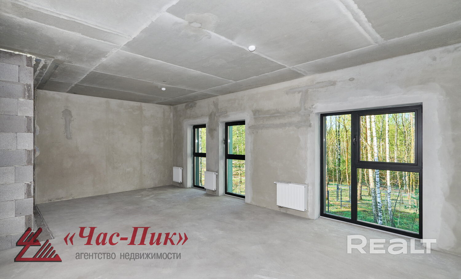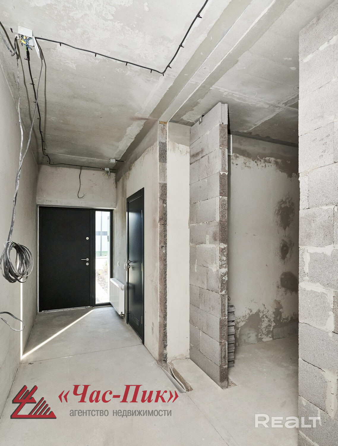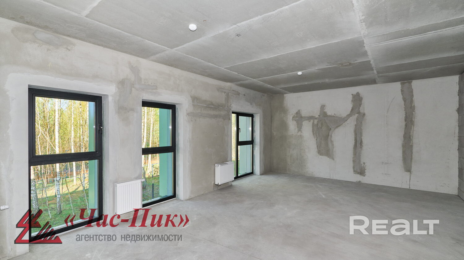 Таунхаус в два уровня общей площадью по СНБ 142,9 м2; Вам не придётся ожидать окончания строительства так как Дом уже возведён, принят в эксплуатацию, ключи и документы на руках! Не придётся переплачивать за чужой ремонт так как таунхаус без отделки, и Вы сможете воплотить в реальность свои самые смелые дизайнерские идеи! Квартира расположена в каркасно-блочном таунхаусе и имеет огороженный участок земли 4 сотки. Отличная и рациональная планировка для дружной семьи - просторная гостиная с кухонным оборудованием, три спальни, три санузла и гардероб! На первом этаже большие французские окна в пол, которые и являются выходом на свой участок! На втором этаже имеется возможность организовать три отдельные жилые комнаты. В мастер-спальне есть свой санузел и гардероб. Все окна увеличенного размера! Въездные ворота в застройку открываются с пульта. До Минска всего 3.5 км по асфальтированной дороге! Все коммуникации – центральные. Отопление индивидуальное на газу! Охрана, огороженная территория комплекса! Чистая продажа, без обременений! Торг!