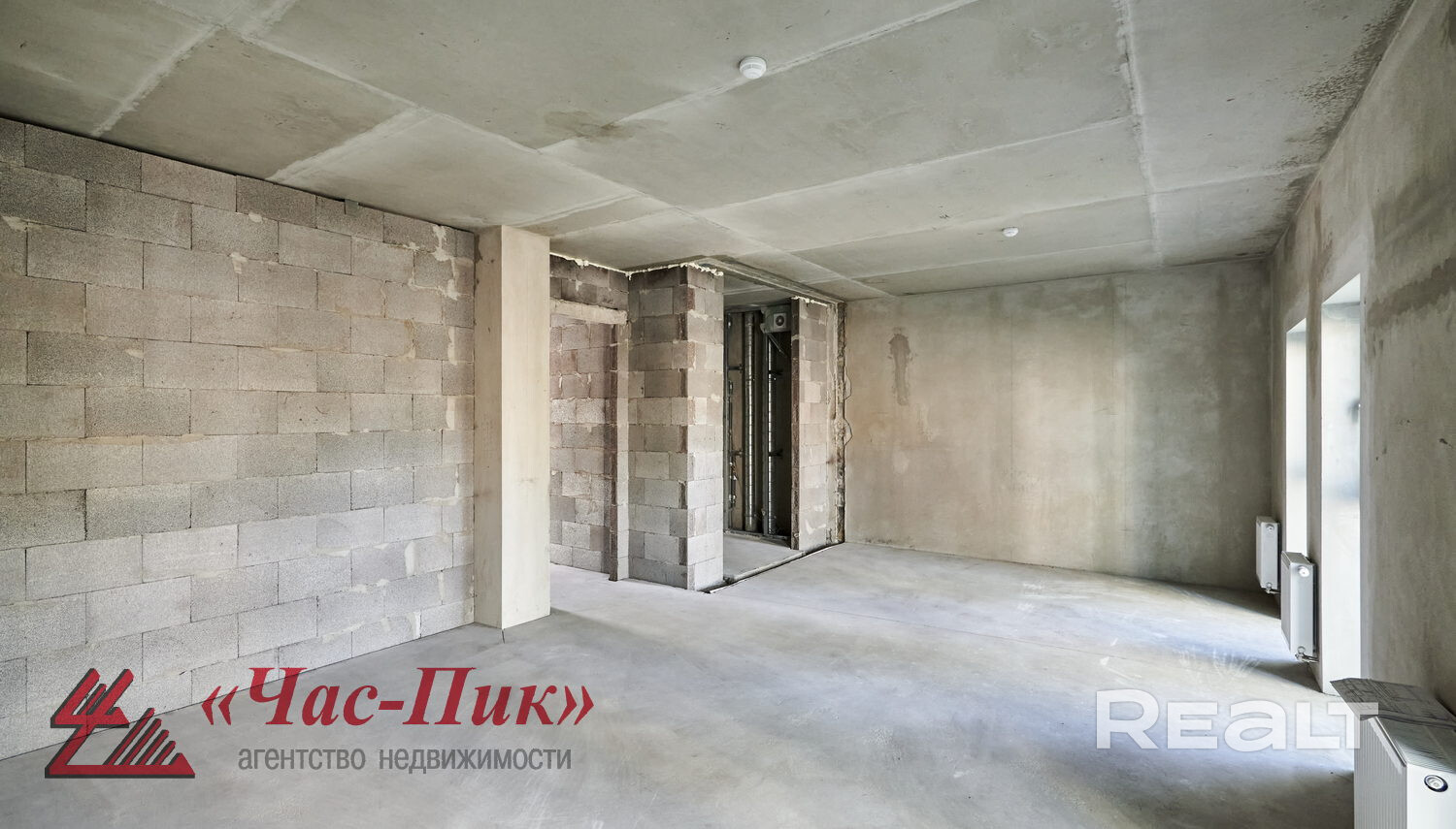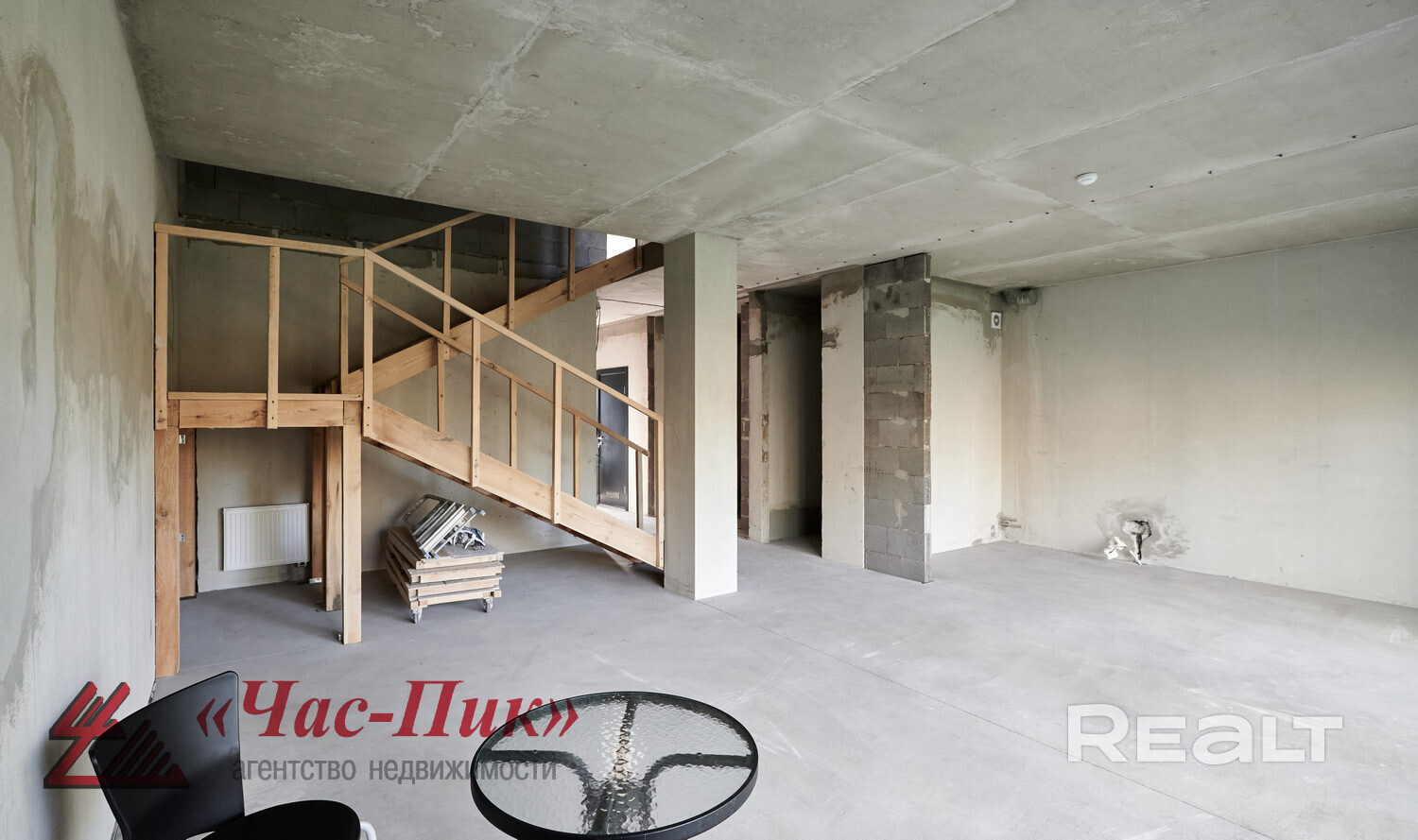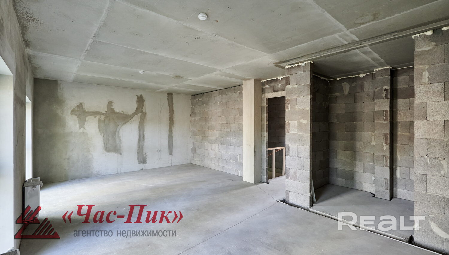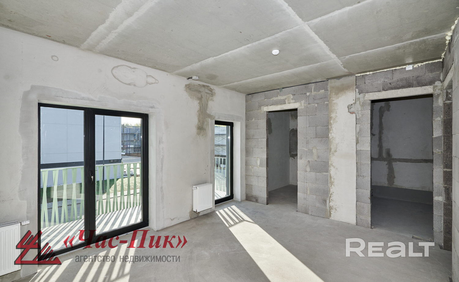 Таунхаус в два уровня общей площадью по СНБ 142,9 м2; Вам не придётся ожидать окончания строительства так как Дом уже возведён, принят в эксплуатацию, ключи и документы на руках! Не придётся переплачивать за чужой ремонт так как таунхаус без отделки, и Вы сможете воплотить в реальность свои самые смелые дизайнерские идеи! Квартира расположена в каркасно-блочном таунхаусе и имеет огороженный участок земли 4 сотки. Отличная и рациональная планировка для дружной семьи - просторная гостиная с кухонным оборудованием, три спальни, три санузла и гардероб! На первом этаже большие французские окна в пол, которые и являются выходом на свой участок! На втором этаже имеется возможность организовать три отдельные жилые комнаты. В мастер-спальне есть свой санузел и гардероб. Все окна увеличенного размера! Въездные ворота в застройку открываются с пульта. До Минска всего 3.5 км по асфальтированной дороге! Все коммуникации – центральные. Отопление индивидуальное на газу! Охрана, огороженная территория комплекса! Чистая продажа, без обременений! Торг!