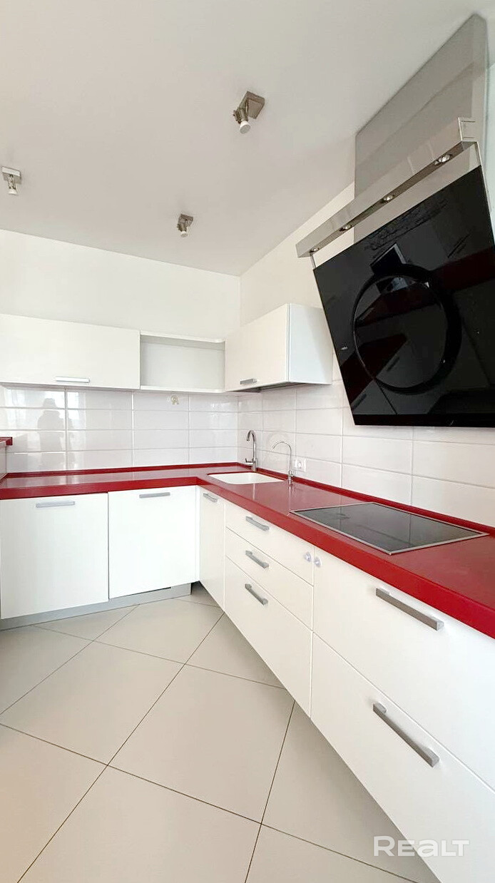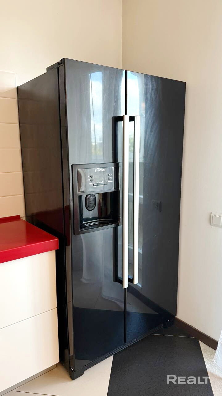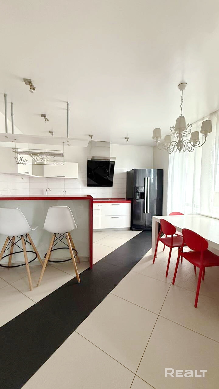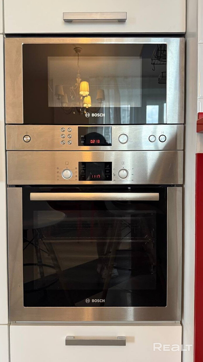 - Кухня, достойная шеф-повара 👨🍳. Это не просто место для готовки, это командный центр вашего хорошего настроения. Ярко-красная столешница будит лучше любого эспрессо ☕️, а полный комплект техники Bosch (включая холодильник side-by-side, который сам делает лед для ваших коктейлей 🍹) превращает рутину в удовольствие. Футуристичная вытяжка Elica позаботится, чтобы аромат вашего стейка не смешивался с вашими планами на вечер. 😉