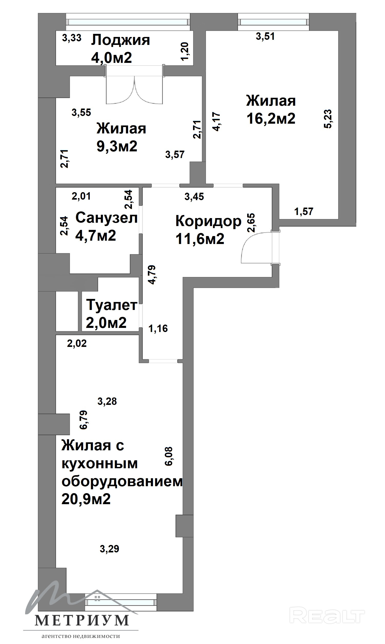 - кухня-гостиная 20,9 мкв, с возможностью организовать собственную террасу
