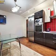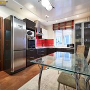Встроенная угловая кухня выполнена по индивидуальному заказу.