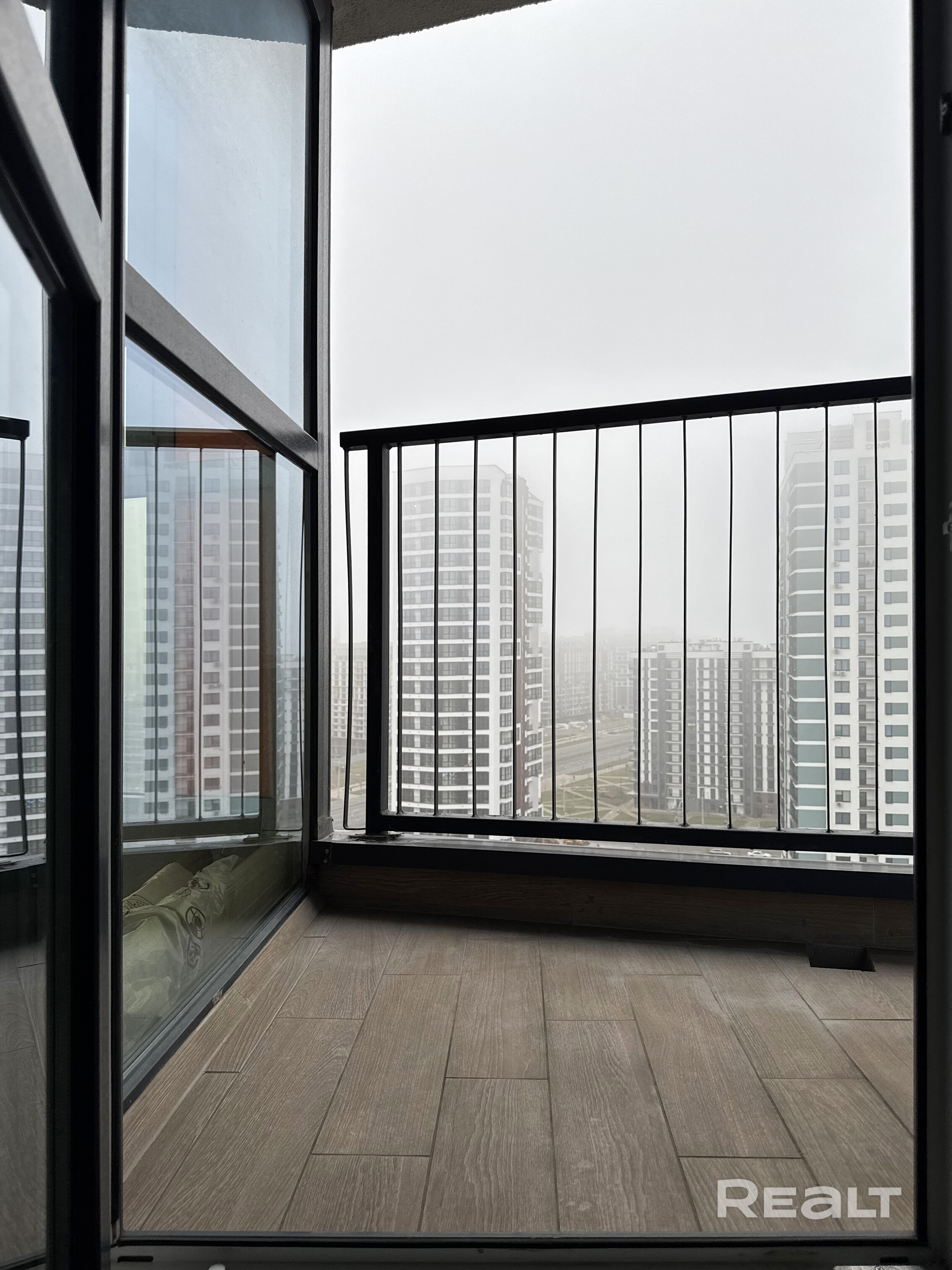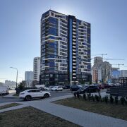 Квартира расположена на 16-м этаже 19-этажного дома 2021 года постройки и имеет две лоджии с панорамными окнами, откуда открывается вид во двор и на МФЦ.