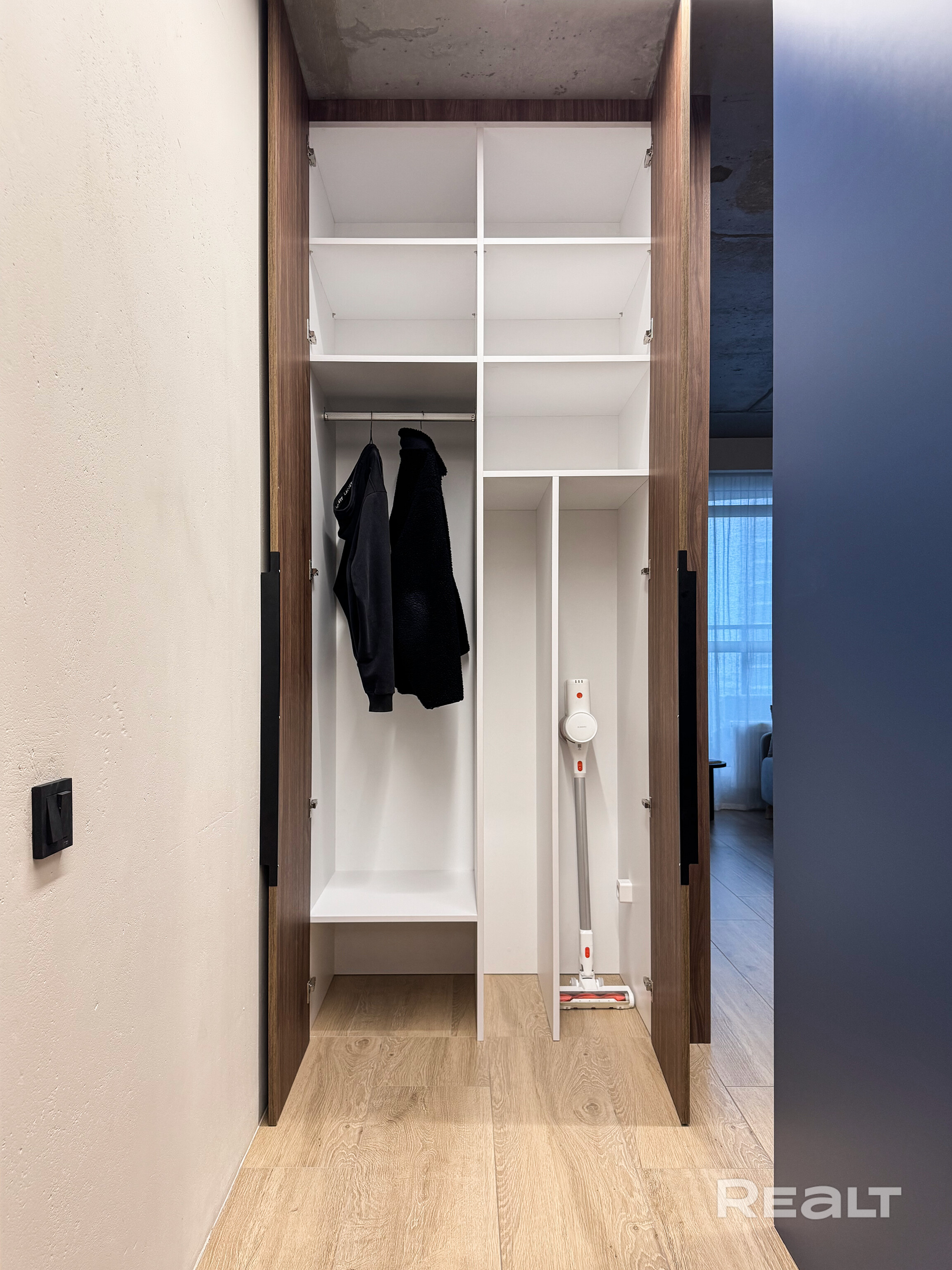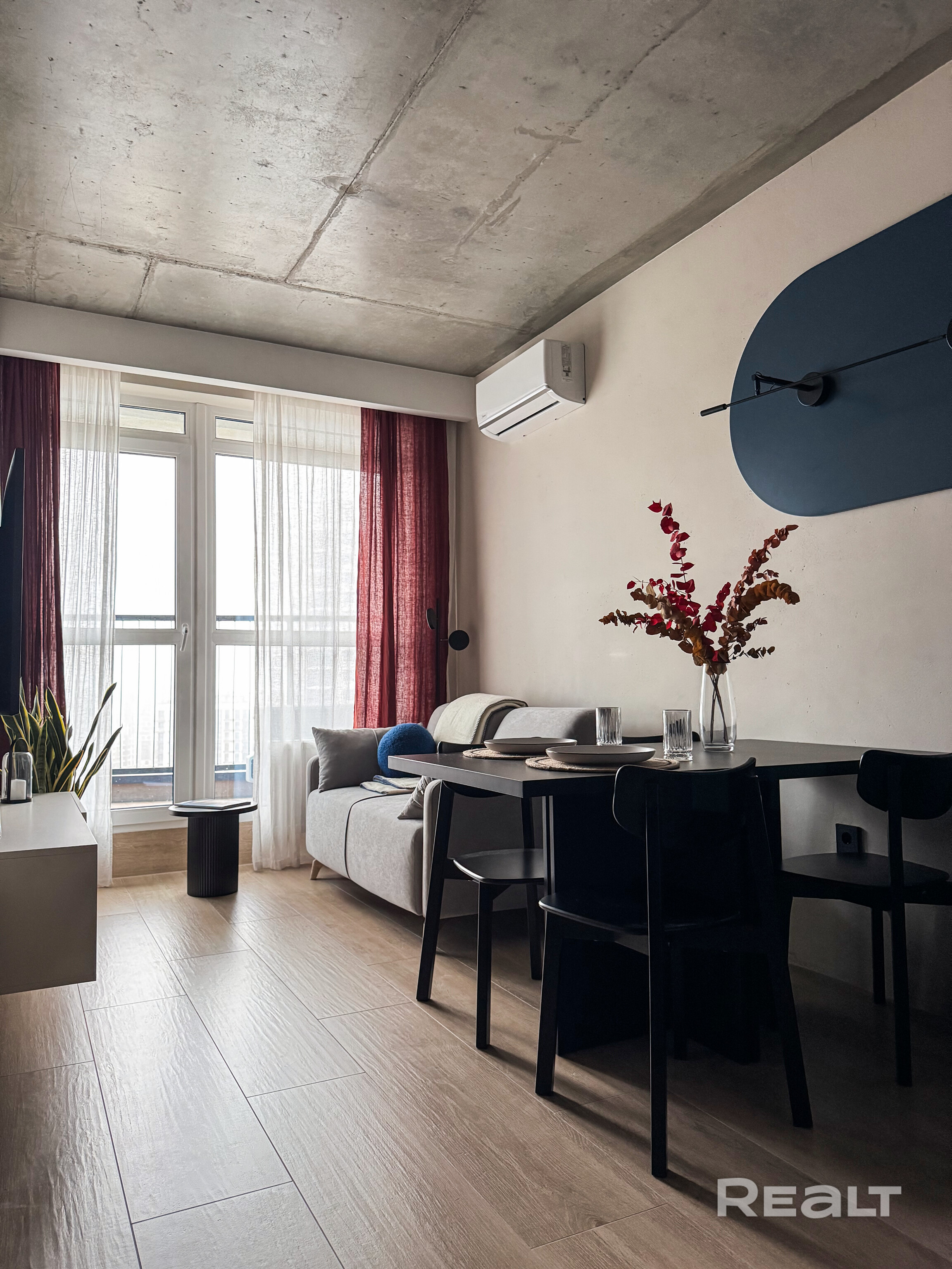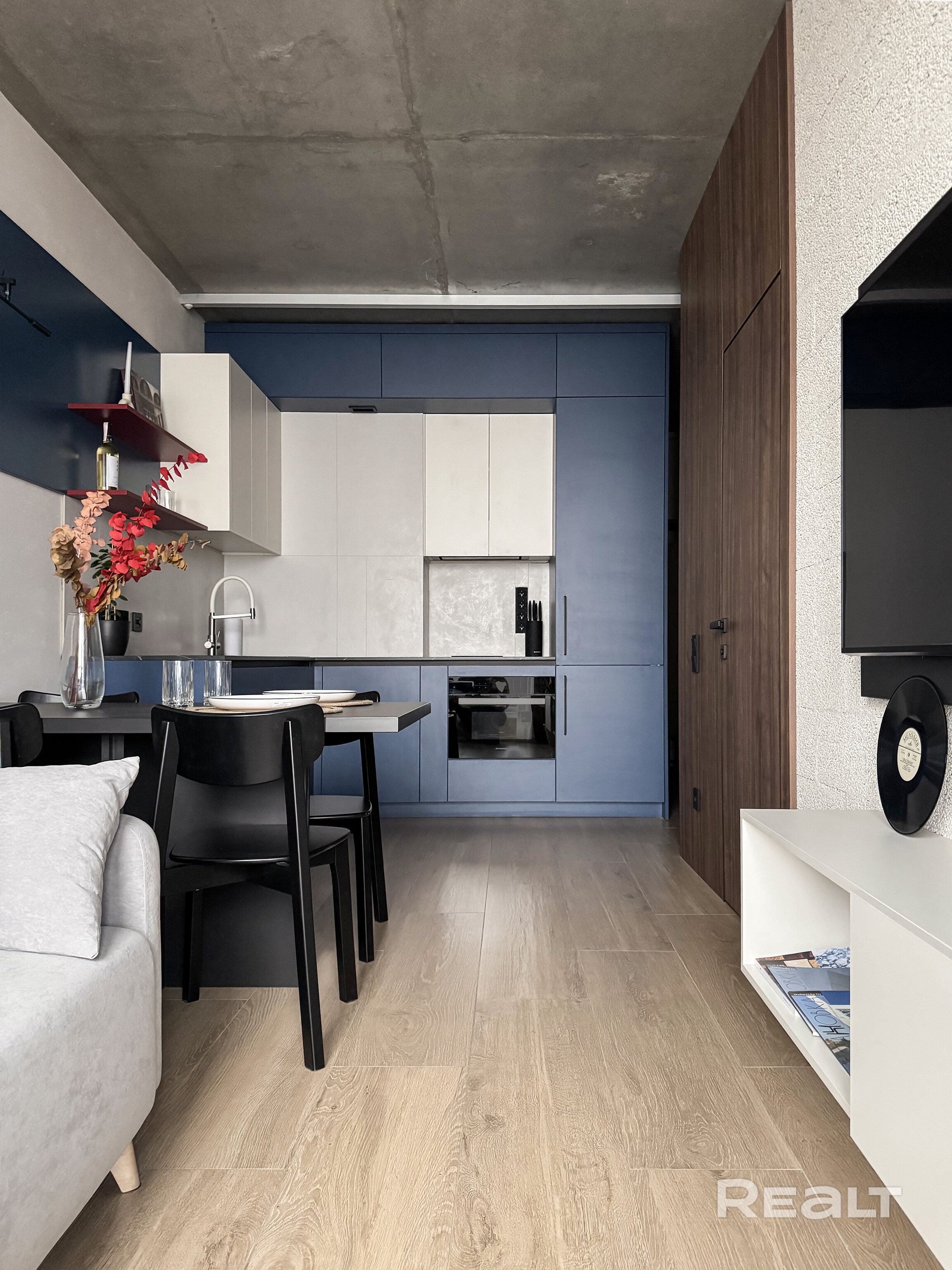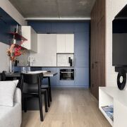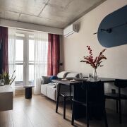 - Планировка: евродвушка (кухня совмещена с жилой)