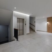 Лифты, спускающиеся на -1 этаж с кладовыми помещениями (4.6м2).