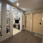 · вместительныйкоридор с местами для хранения (встроенный шкаф) и теплым полом, зонированный колоннами, из него можно попасть во все 4 комнаты.