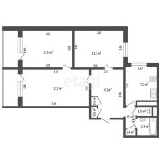 · Три светлые жилые комнаты (12.5, 12.5 и 17.2 кв. м), что даёт безграничные возможности планировки: уютный кабинет, детская и просторная спальня для родителей.