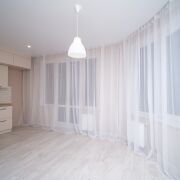 Грамотное зонирование места и света, натяжные потолки, на полу в комнатах и гостиной износостойкий и влагостойкий ламинат, в сан.узлах и входной группе плитка.