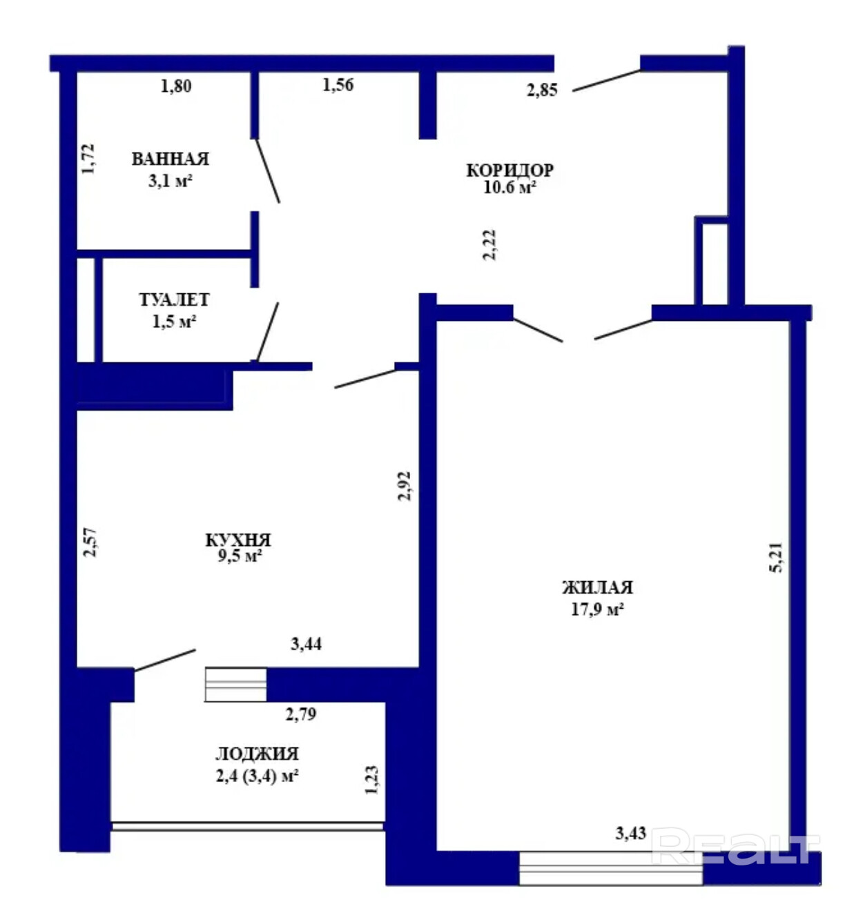 · Общая площадь квартиры по СНБ 45 кв. м., жилая 17,9 кв. м., кухня 9,5 кв. м.