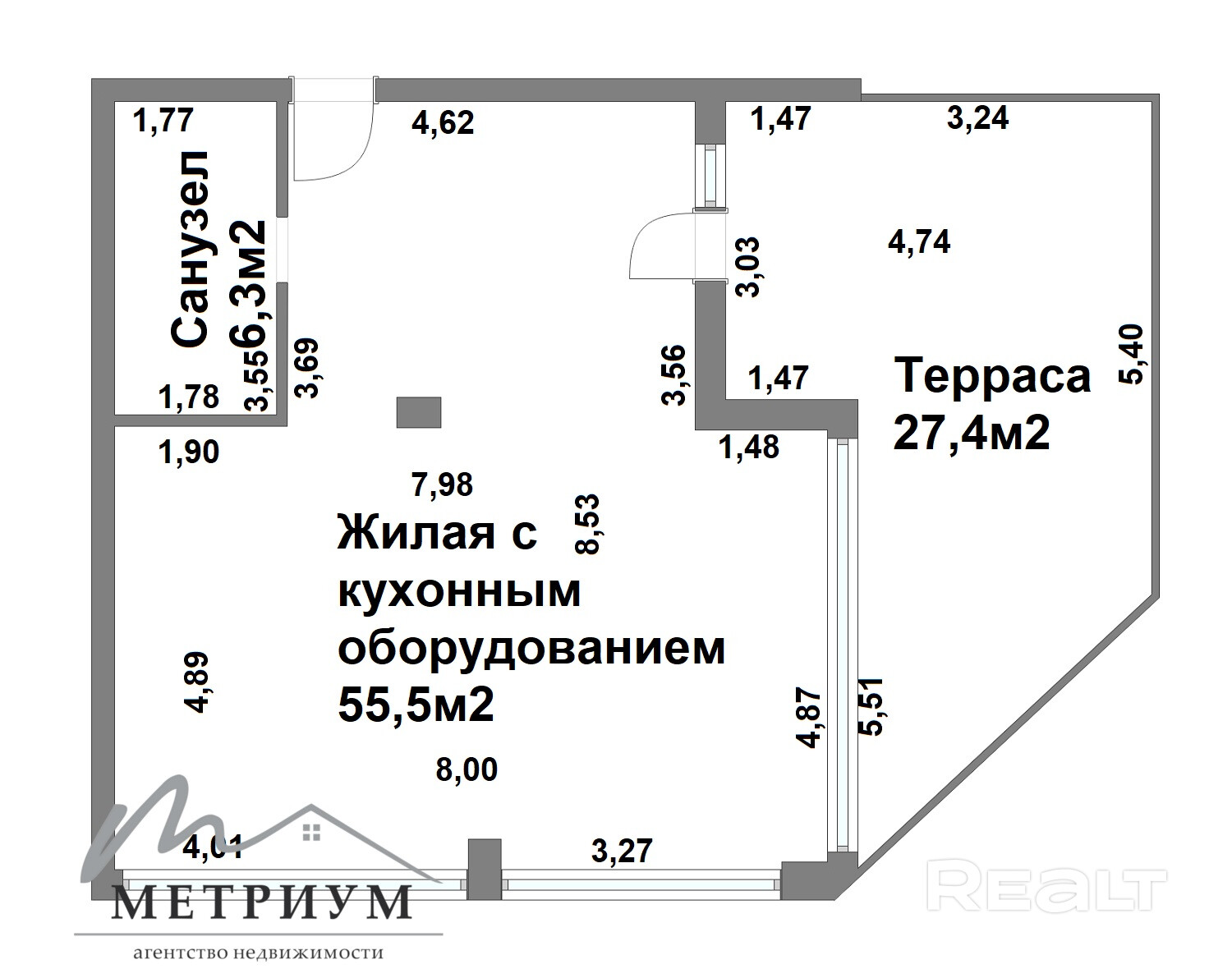 55.5 м²