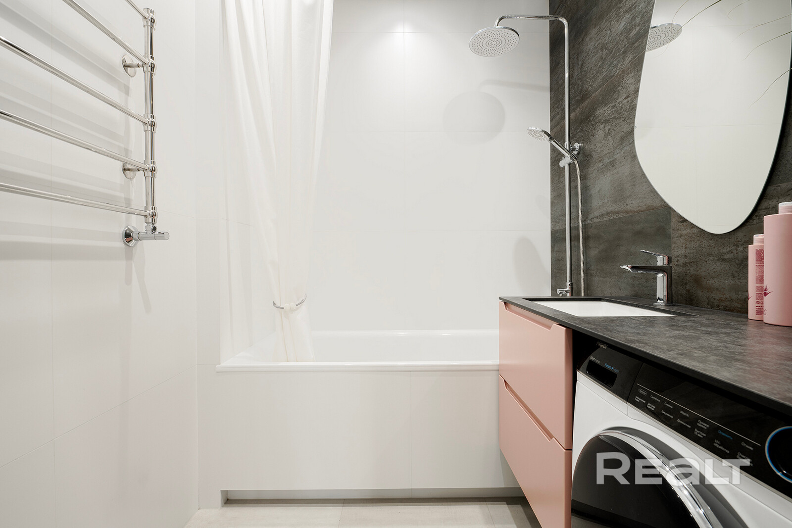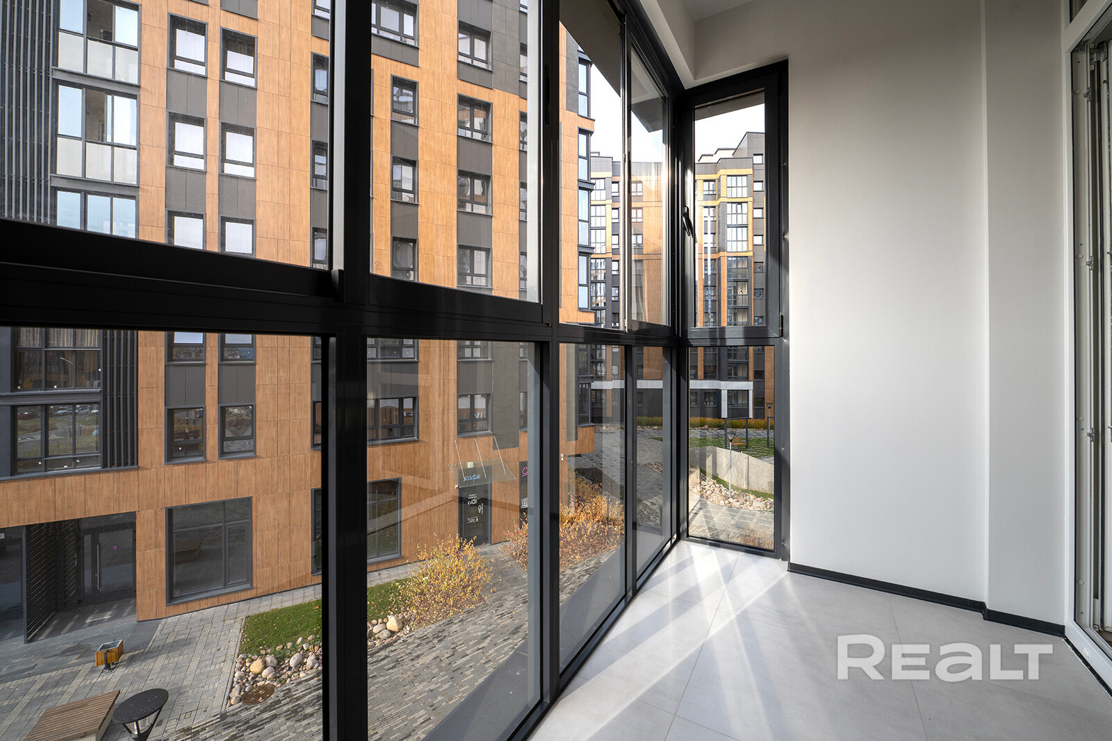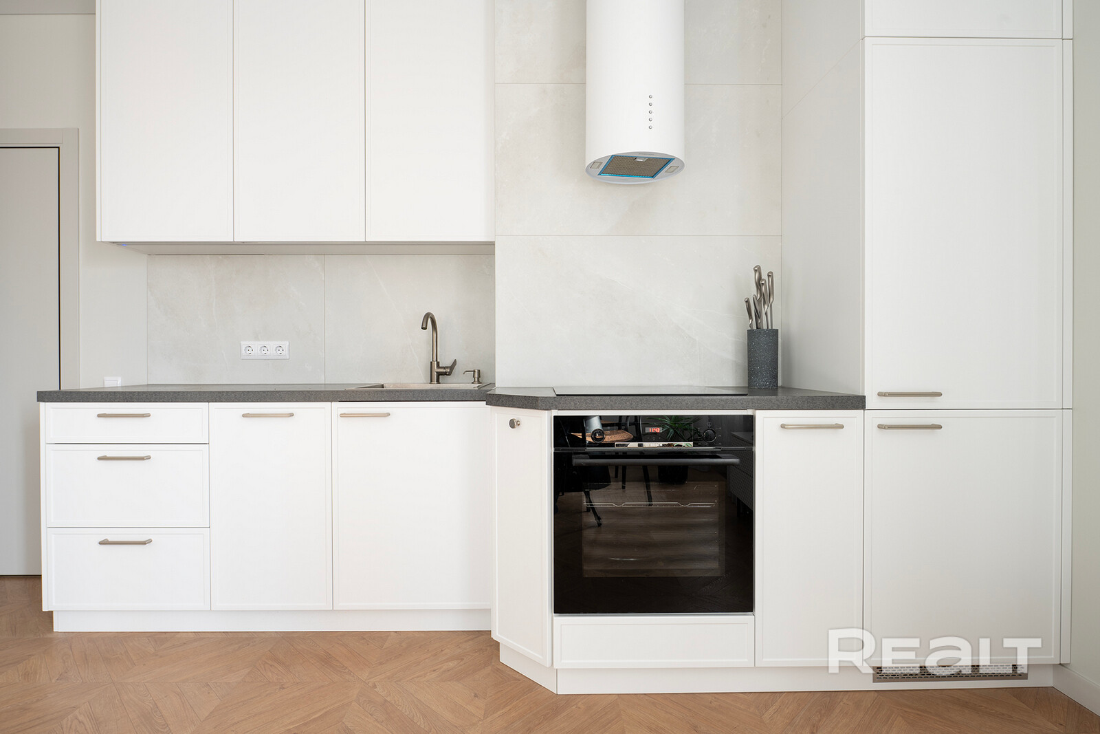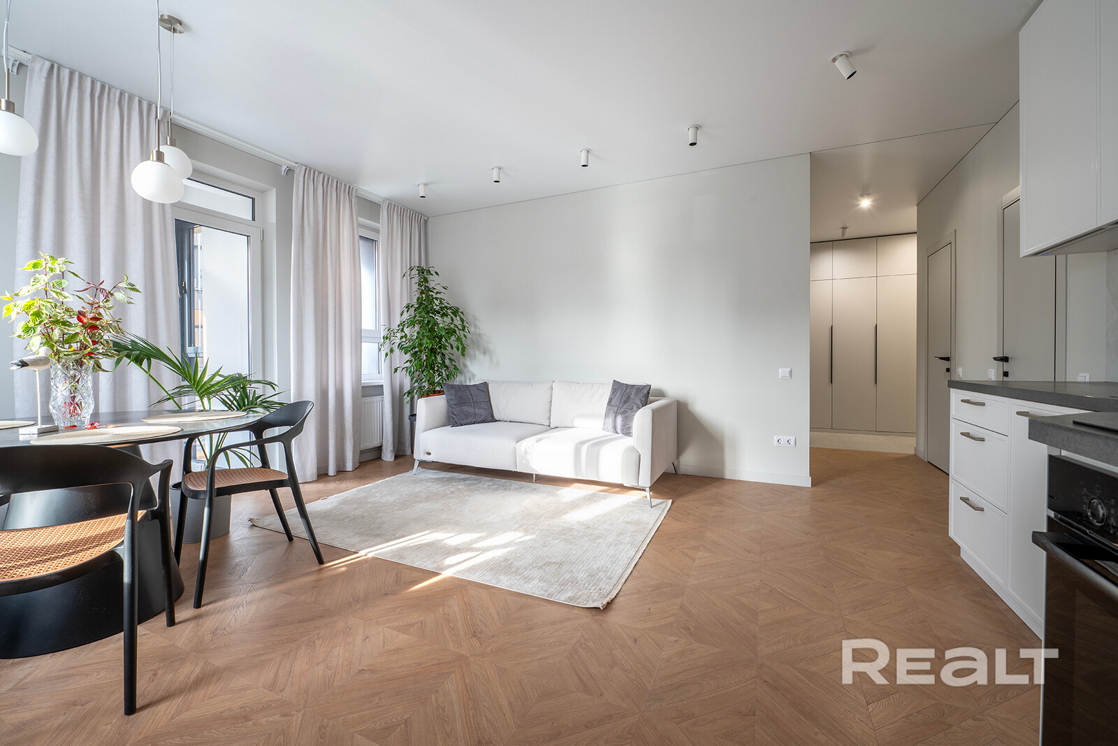 - Просторная кухня - гостиная 22,5 м2 с двумя окнами и выходом на лоджию, откуда открывается вид на Свислочь и набережную реки