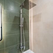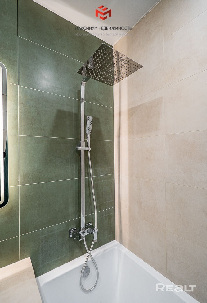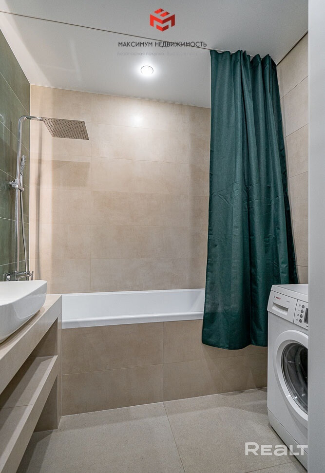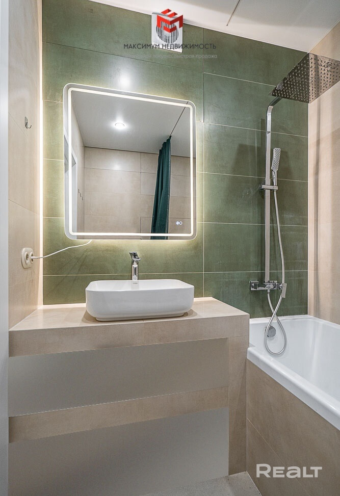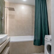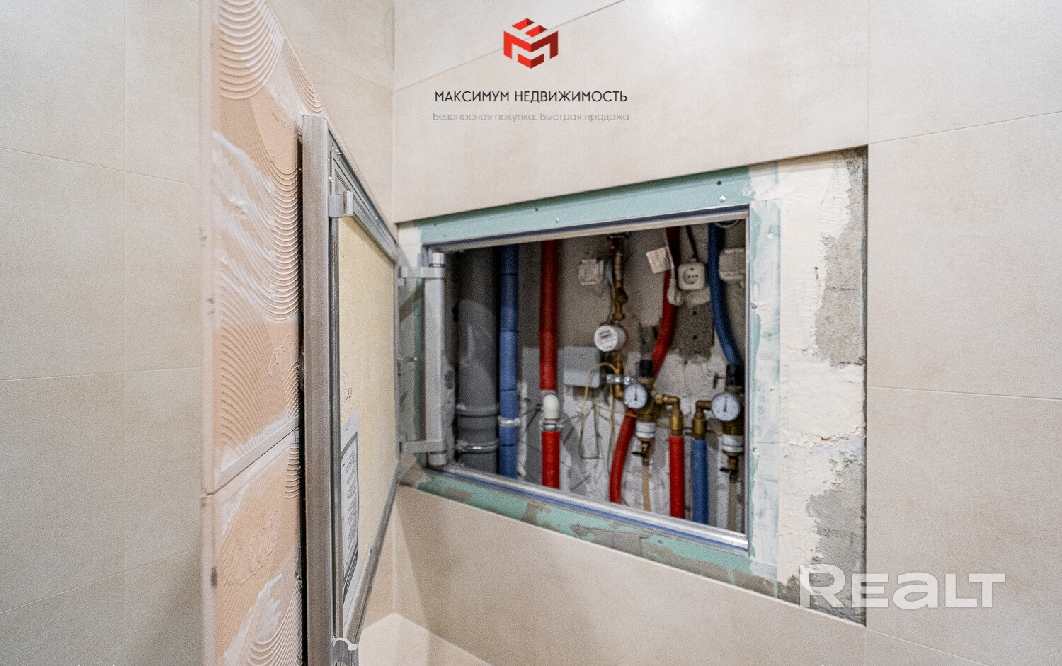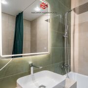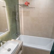 В санузле современная сантехника и высококлассная испанская плитка, все сантехнические коммуникации скрыты, установлен бойлер.