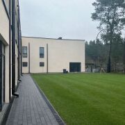 - Подъезд к двухэтажному таунхаусу с твердым покрытием (асфальт);
