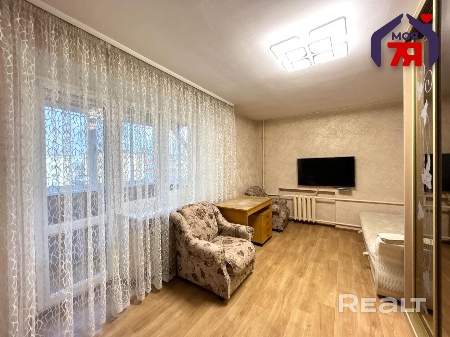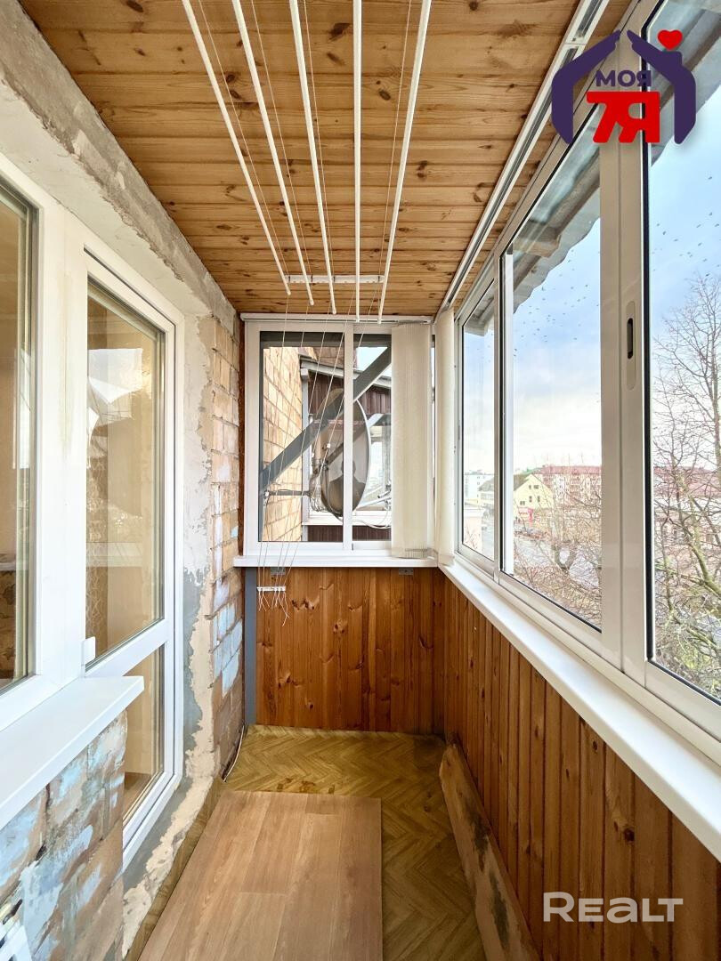 - Из жилой комнаты есть выход на застекленный балкон. Балкон утеплен и обшит вагонкой.