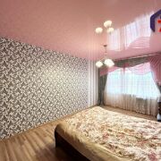 - На полу уложен практичный ламинат, окна деревянные ПВХ гарантируют тепло в холодное время года и прохладу летом. Натяжные потолки придают особый шарм ремонту.