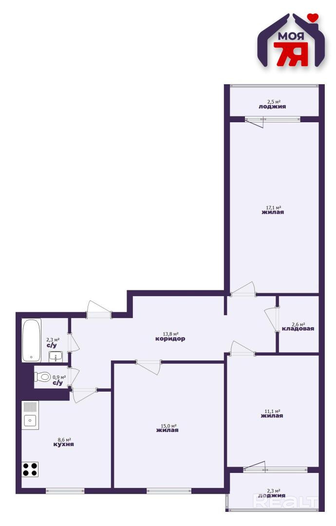 - Квартира имеет практичную планировку, которая позволяет рационально использовать каждый квадратный метр. Три изолированные жилые комнаты.