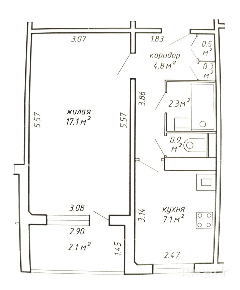 17.1 м²