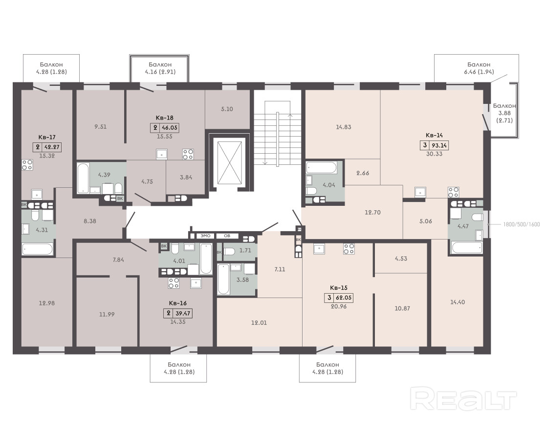 - Площадь балконов
