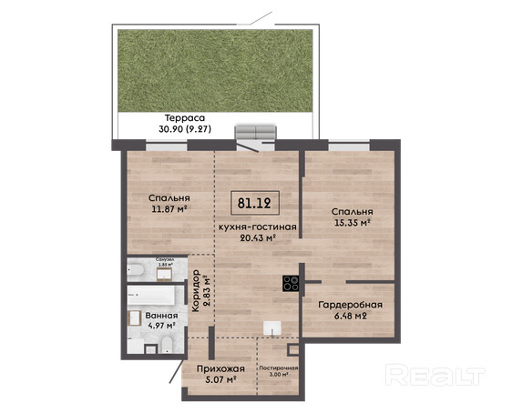 Эта квартира - идеальный выбор для семьи, ценящей пространство, приватность и эстетичную природную среду.