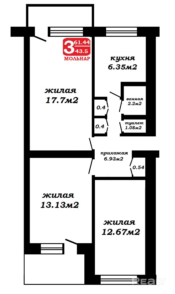 • Комнаты: Три раздельные комнаты, что обеспечивает приватность для каждого члена семьи.