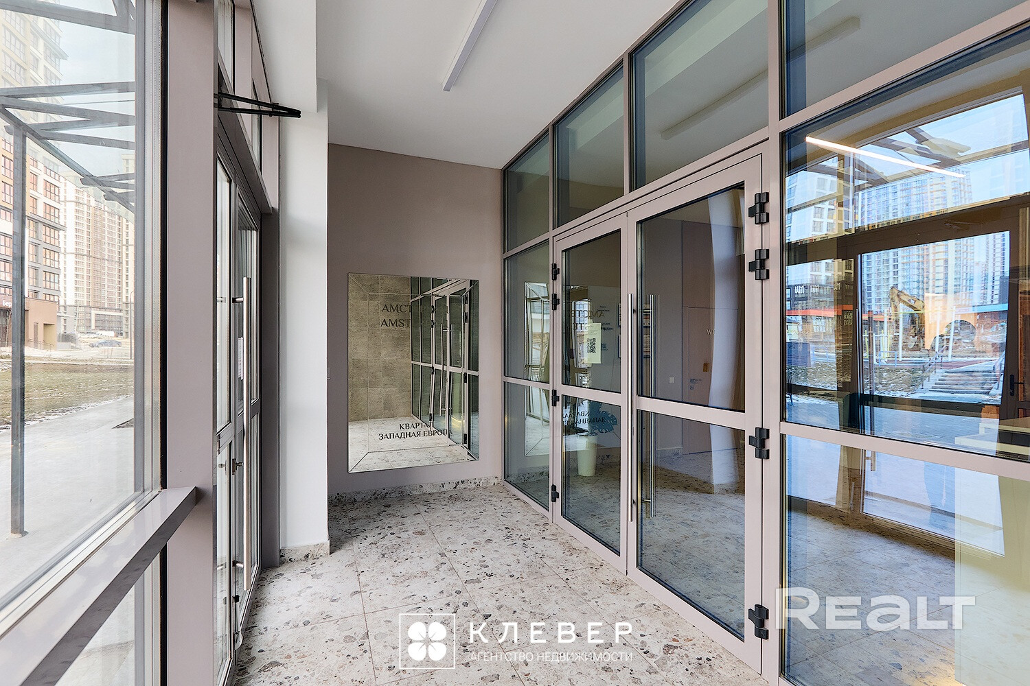 Квартира располагается на 12 этаже 25-ти этажного дома. В квартире большие панорамные окна в пол с усиленными двухкамерными стеклопакетами и замками