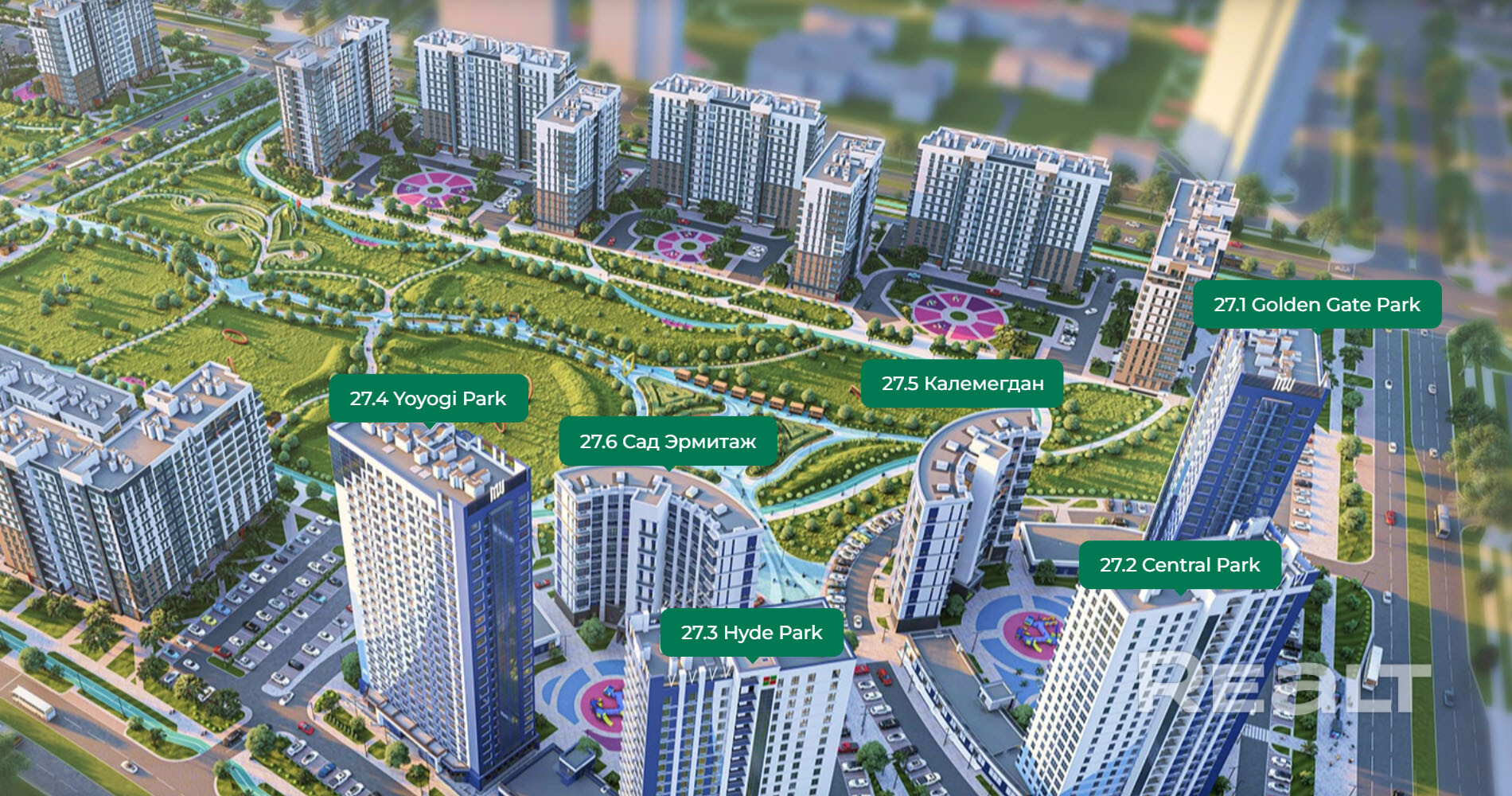- Частные медцентры, кафе, спортплощадки, детские игровые зоны.