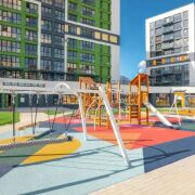 Спортивные площадки, велопарковки и благоустроенные дворы.