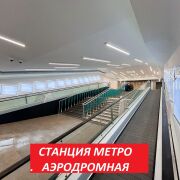 У входа в МФЦ в конце 2024 году откроется станция метро «Аэродромная», где уже ведутся отделочные работы керамогранитом