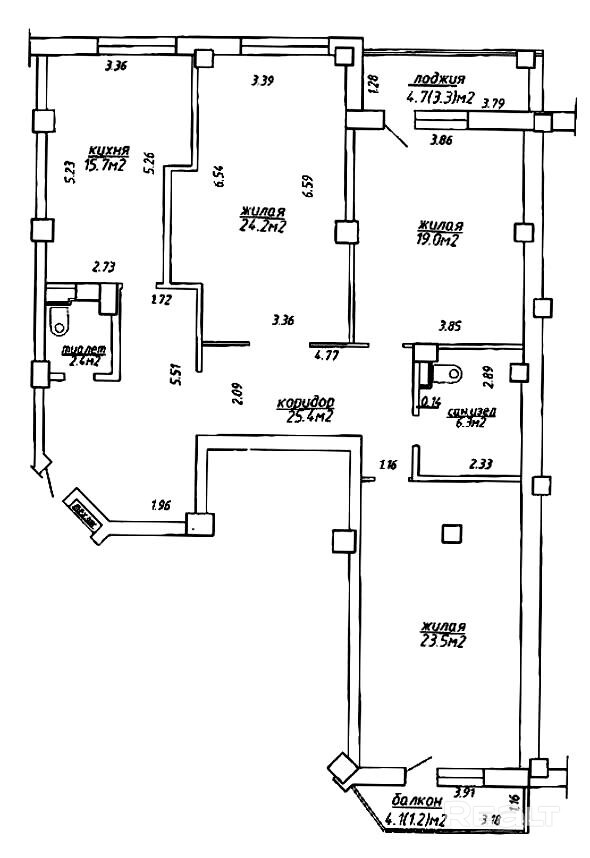 В квартире грамотная планировка: три отдельные большие жилые комнаты, кухня 15.7 м2, раздельный санузел, просторная прихожая, коридор и лоджия.