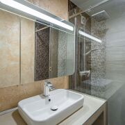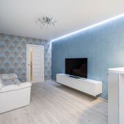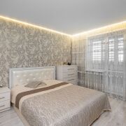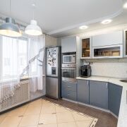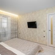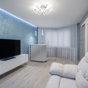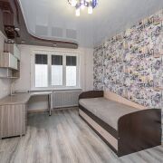 В квартире выполнен качественный ремонт: выровнены все стены, пол ламинат/плитка, натяжные полотки с подсветкой. Заменены все окна (кроме эркерного в гостиной – там деревянный стеклопакет), лоджия утеплена + отделка вагонкой.