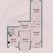 3 раздельные комнаты 17,1*17,0*12,3м2.