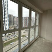 Квартира-студия удачной квадратной планировки с большой панорамной лоджией, что позволяет разделить квартиру на спальную зону, кухню-гостиную и кабинет. Окна выходят на солнечную сторону.
