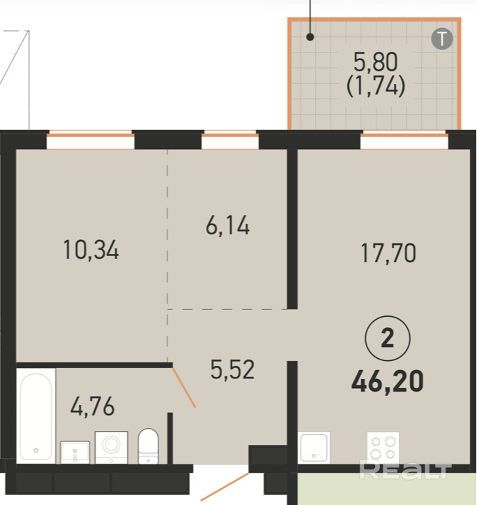 Компактная 2‑комнатная квартира в новостройке в Новой Боровой, дом 1.2, на первом этаже, с высокими потолками 2,7 м и собственной террасой. Окна выходят во внутренний тихий двор без машин, что обеспечивает комфорт и отсутствие дорожного шума. Просторная кухня площадью 17,7 м², отдельная спальня 10,34 м² и дополнительная комната 6,14 м², которую можно использовать как рабочий кабинет или гостевую. Квартира без отделки, чистая продажа.