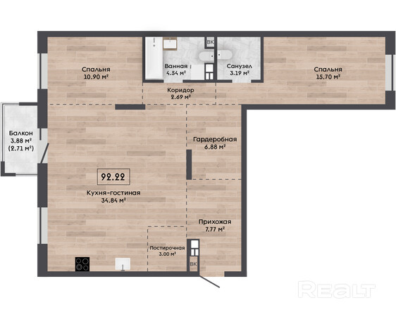 3-комнатная квартира в монолитном доме комфорт-класса ЖК «Зеленая Гавань», расположенном в одном из самых гармоничных кварталов «Горный ручей».