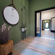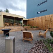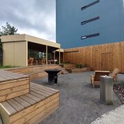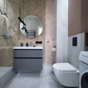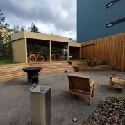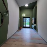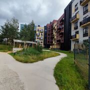 На первом этаже дома оборудованы удобные вспомогательные помещения: комната для мытья лап домашних животных, колясочная, оригинальная чат-доска для общения соседей. Закрытый и благоустроенный двор, включающий в себя территорию двух домов, гарантирует безопасность и спокойствие, круглосуточное видеонаблюдение. Гостевая парковка расположена по внешнему периметру за шлагбаумом. Для маленьких жителей предусмотрены детские игровые площадки, для взрослых – уютные зоны отдыха с барбекю и проектором, велобоксы.