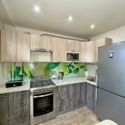 • Натяжные потолки: Современные натяжные потолки в кухне и комнате придают квартире стильный и аккуратный вид, а также визуально увеличивают пространство.