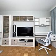 • На кухне остается вся мебель, кроме плиты, холодильника, стола и стульев.