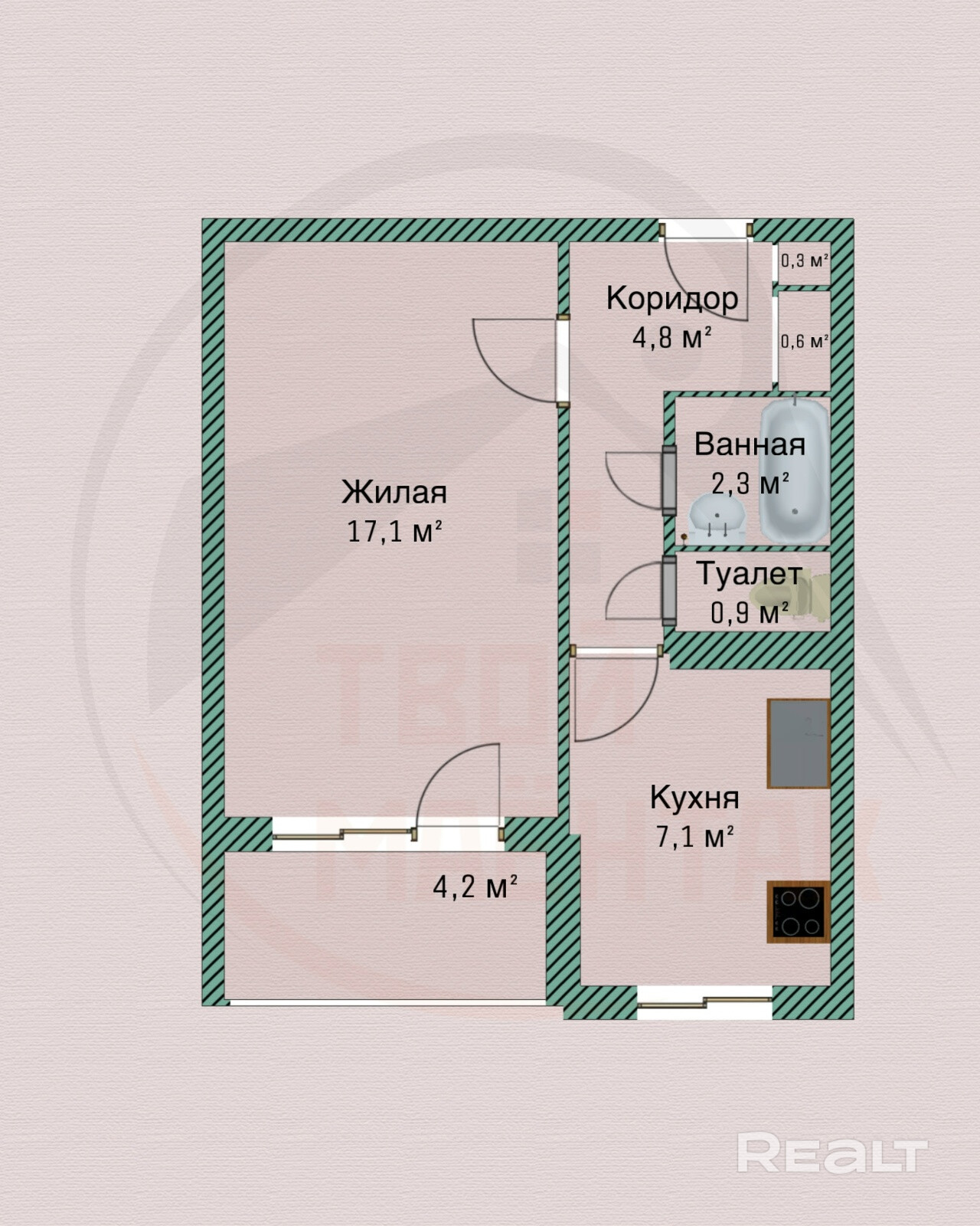 17.1 м²