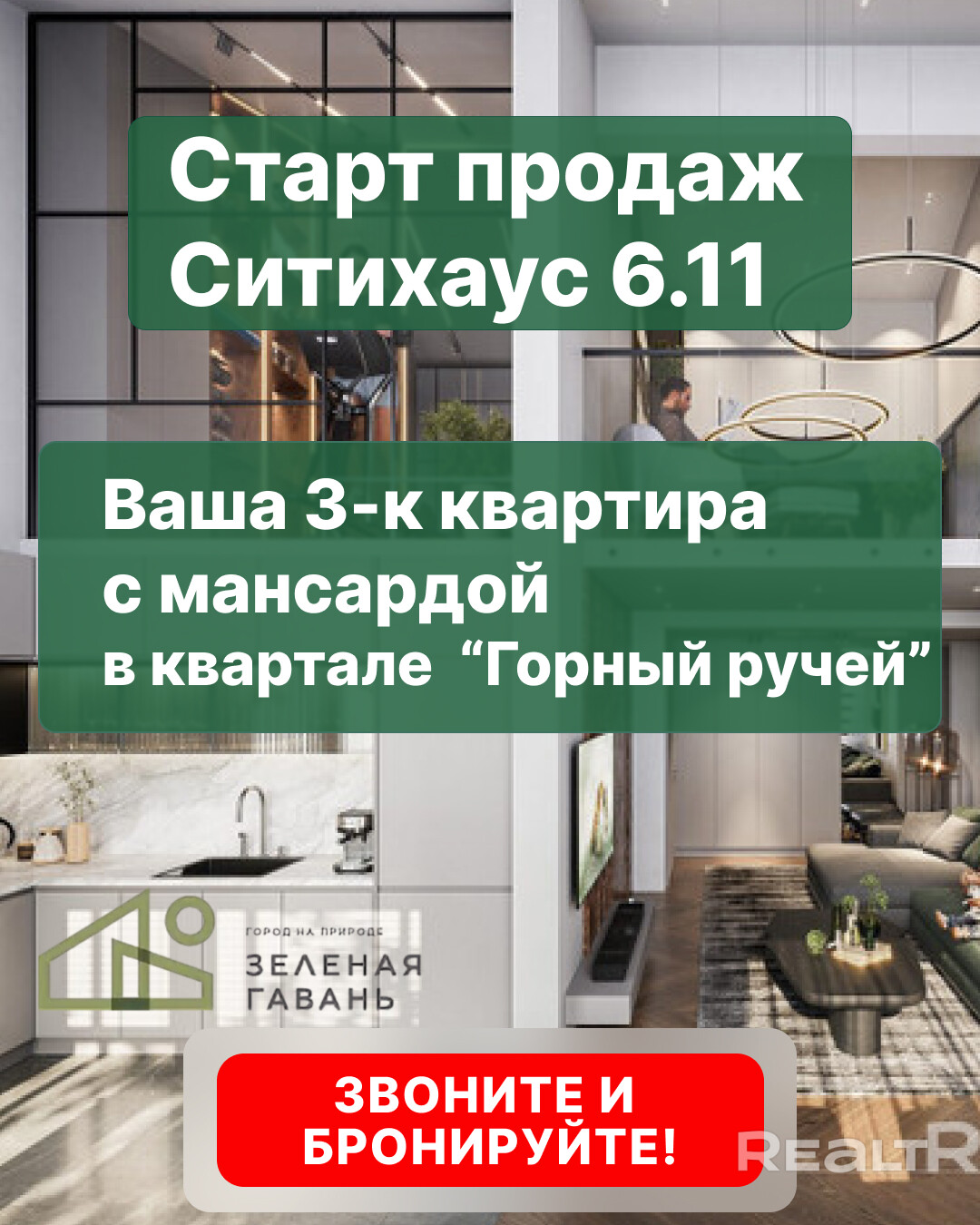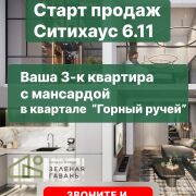 Старт продаж в ЖК "Зеленая Гавань"! Ваша 3-к квартира + мансарда в квартале "Горный ручей" ждет вас!