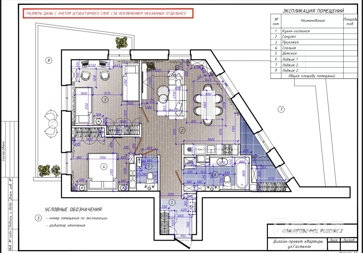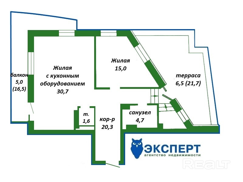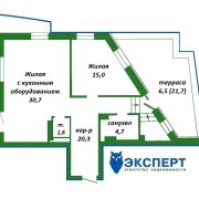 - единственый вариант в комплексе общей площадью 83.8 кв.м. с просторной террасой 21.7 кв.м и балконом с панорамным видом на уютный дворик и парк;