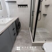 - ванная комната: стиральная машина «Samsung», душевое остекление «Veconi», инсталляция с подвесным унитазом
